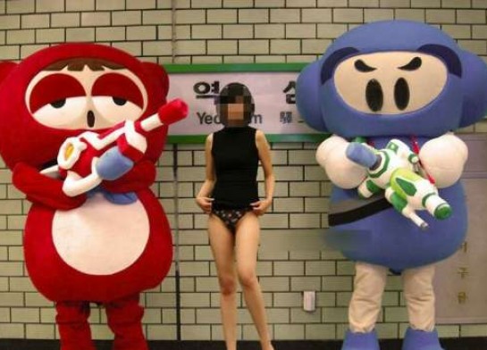 거리 노출 몸매자랑하는 한국미시녀들
